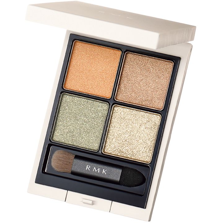 「涙袋の下の位置にチークを指で横長にのばし、余ったチークを鼻先にも置くと顔が短く見えます。右下のアイシャドウを眉下まで広げ単色で仕上げた目元、ツヤ出しの透明リップでナチュラルな印象に」(桑野さん)