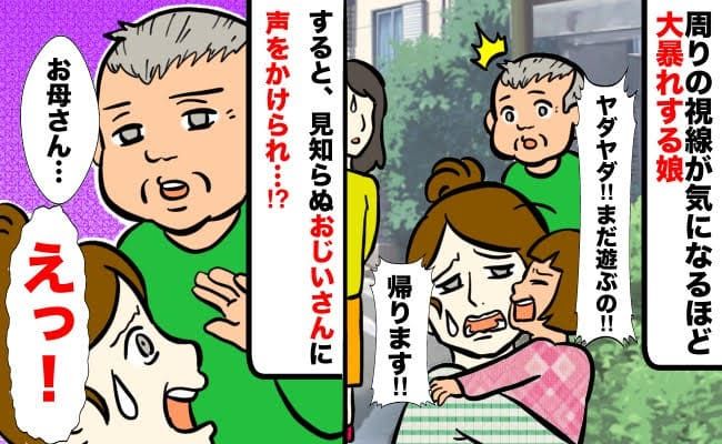 「ちょっとお母さん…」帰宅拒否し暴れる娘に叩かれ涙目→すると見知らぬおじいさんがまさかのひと言を