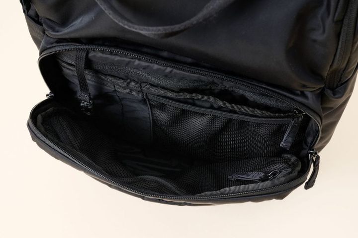 編集O:本当だ。ペン入れやメッシュポケット、ポケットの中のポケットもあって大切なものも厳重にしまえますね。仕事はもちろん、海外旅行にもいいかも。