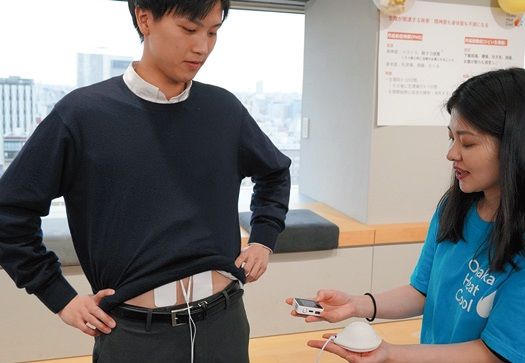 なかなか理解されにくく、人に伝えにくい生理の痛み。それを体験できる画期的な機器「ピリオノイド」を装着し、生理痛について考える研修があるという。研修を行う大阪ヒートクールの久保田千晶さんによれば、電流が流れるパッドを下腹部に貼り付け、微量の電気を流して腹筋を収縮させて痛みを体感するそうだ。