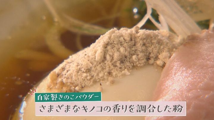 鶏だけでは出せない、複雑なうまみをきのこパウダーで出しているそうです。