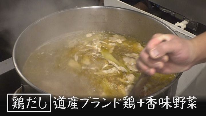 道産のブランド鶏と香味野菜やトマト・ハーブなどを6時間じっくり煮込んだ鶏出汁。