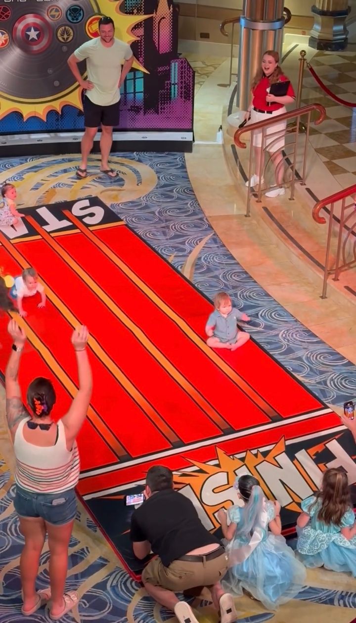 その間にシャフリングで地道にゴールを目指していた「S」コースの赤ちゃんがゴール!!! この勝負を見届けていた人たちは大きな歓声を上げています。