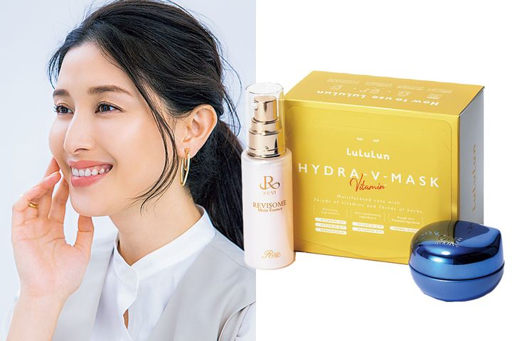 左から、ヒト歯髄細胞順化培養液等配合で肌を活性化。ルヴィソーム モイスト エッセンス50ml ¥28,600(銀座ロッソ)7 種のビタミンとハーブで集中パックすると毛穴が目立たなく。ルルルン ハイドラ V マスク 28枚¥2,420(Dr.ルルルン)ライスパワー®No.11配合でしっかり保湿し乾燥毛穴対策。ONE BY KOSÉ セラム シールド[医薬部外品]40g ¥5,500〈編集部調べ〉(コーセー)