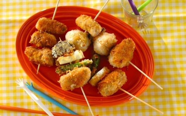 週末は豚こま肉を使って、おうち串カツはいかがですか? 火の通りが早いので、フライパンで揚げ焼きすればOK。広げた豚こま肉にスライスチーズをのせて巻き、リーズナブルなのに食べ応え満点です。これはビールがほしくなりますね。