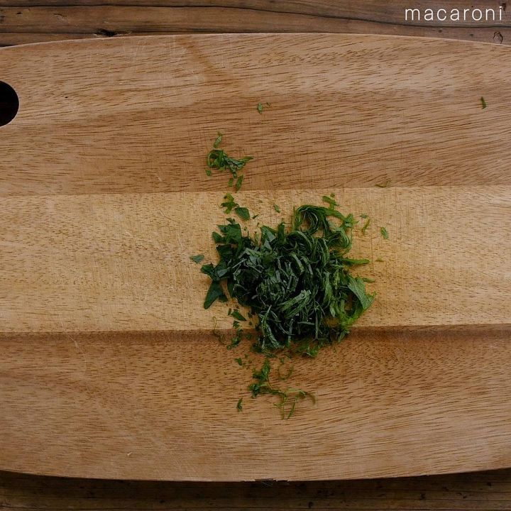 3: ①に大葉と (a) を加えてよく混ぜ合わせたら完成です。