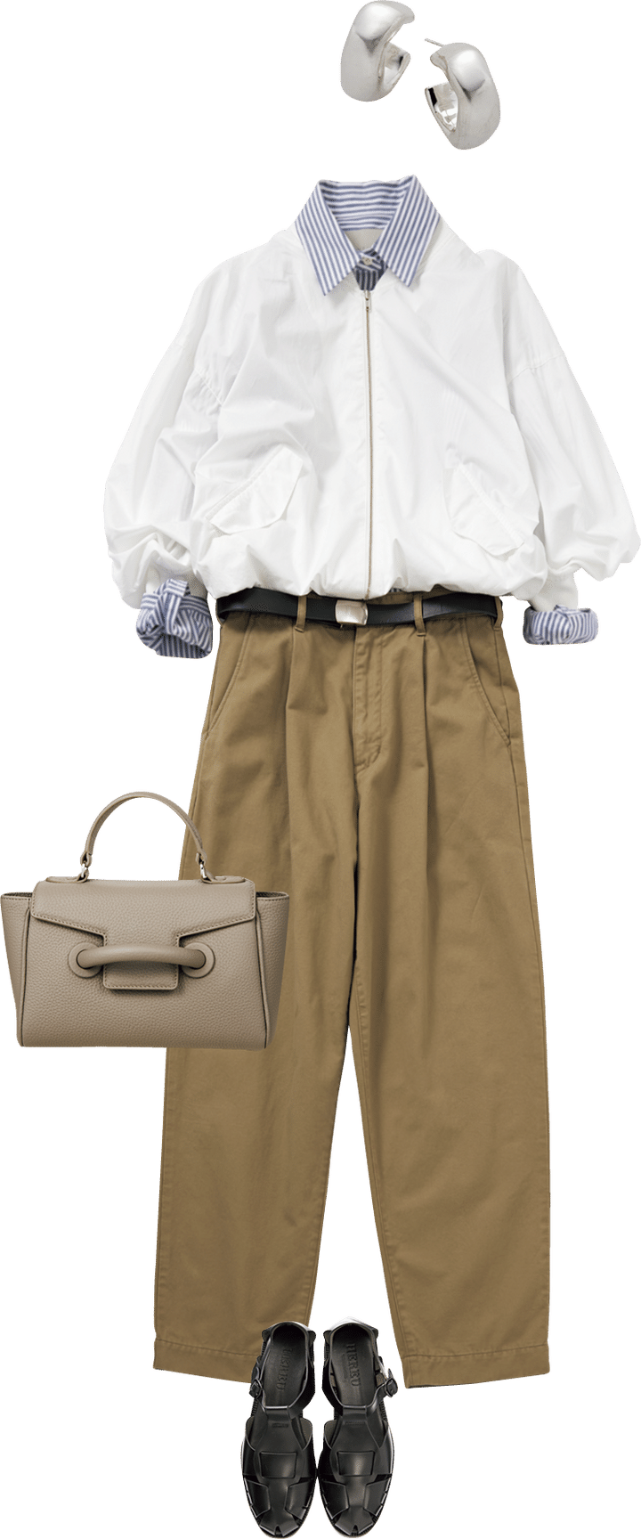 【DAY 18】薄手のブルゾンをシャツライクに活用。インにもシャツを重ねてベルトで締めればきちんと感もUP。