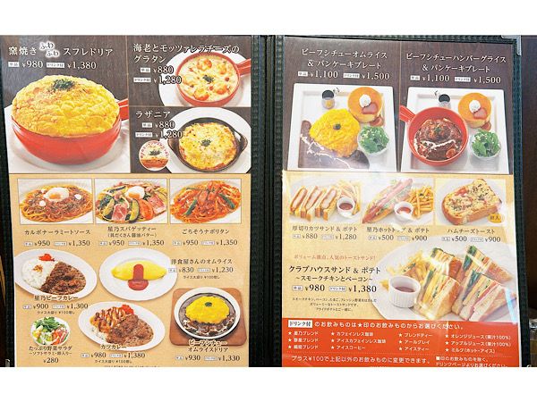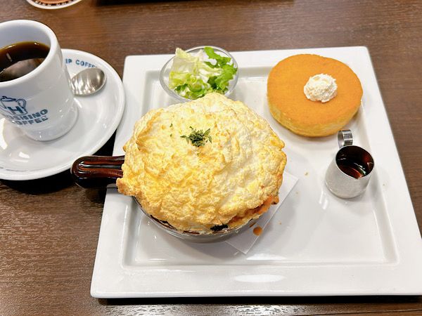 今回は、【ビーフシチューオムライス&パンケーキプレート】と春のおすすめメニューから【ミニスフレドリア&パンケーキプレート】をチョイス。