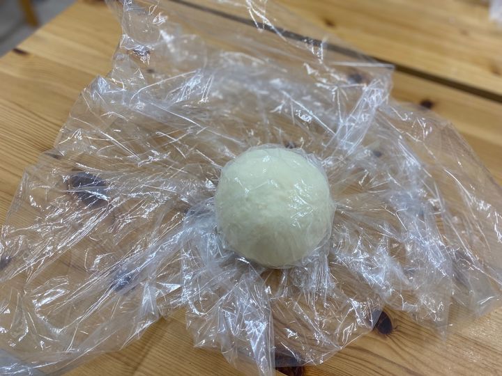 ・最後に真ん中のおへそをねじってとめて団子にします。