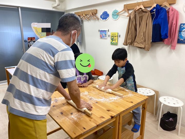 写真は、大阪市西区にある「イリコスキー製麺所」さんでの体験の様子です。