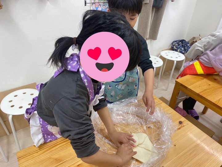 作業台はきれいにして、生地はポリ袋から取り出します。