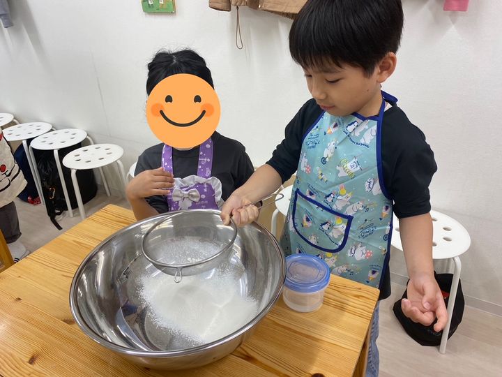 中力粉をふるいにかけます