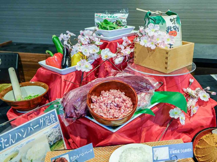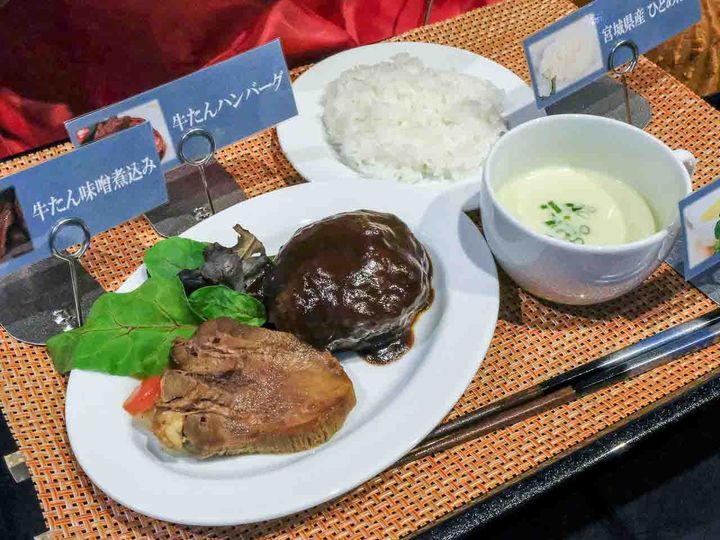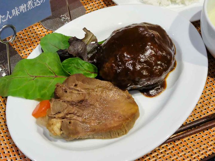 宮城と言えば牛タン。牛タンを使ったハンバーグです。そしてハンバーグの隣には立派な牛タン。「仙台味噌」で、なんと5時間も煮込むのだそう。