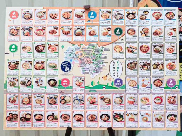 上の地図が今回の121品。すみません、画像ではそれぞれのグルメはよく見えないと思いますが、その数の規模を感じてくださいね。