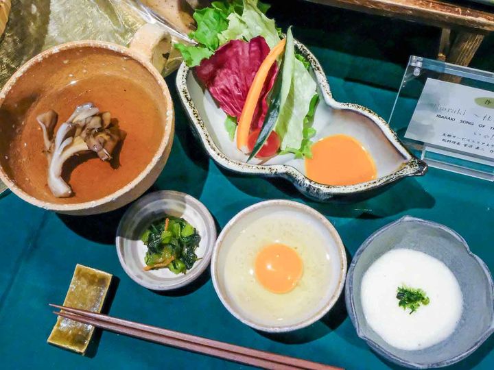 サラダ、笠間の自然薯とまいたけスープ、奥久慈卵も並びます。