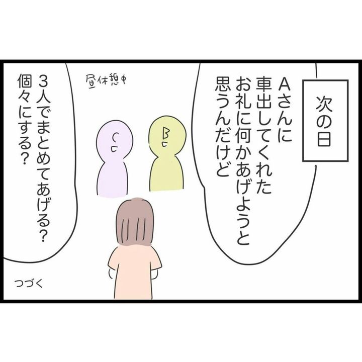 さらに次の日、同僚から車を出してくれた人へのお礼を提案されました。友人はこれまでの自分たちの旅行とは違う様子に、ドキッとしたのではないでしょうか。