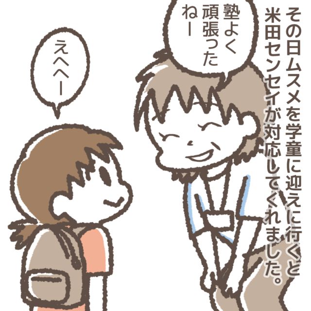 その日、娘ちゃんを学童に迎えに行くと、米田先生が対応してくれました。