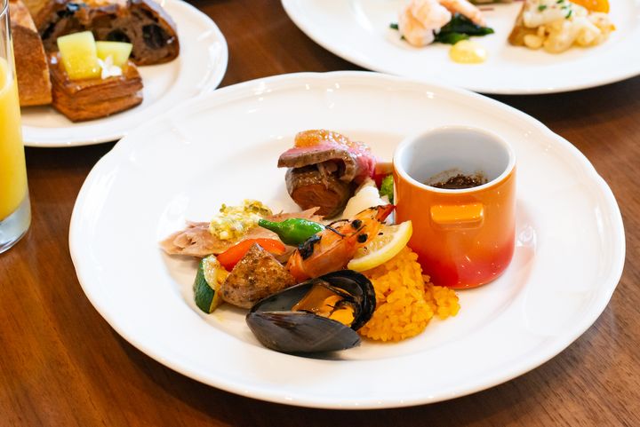 「ラ・リベリュール」では、ブレックファストとディナーを提供。ブレックファストでは、メインディッシュのみオーダーし、副菜などはブッフェコーナーにて好みのものを選ぶことができます。ディナーでは、フレンチのコースを楽しむことができます。