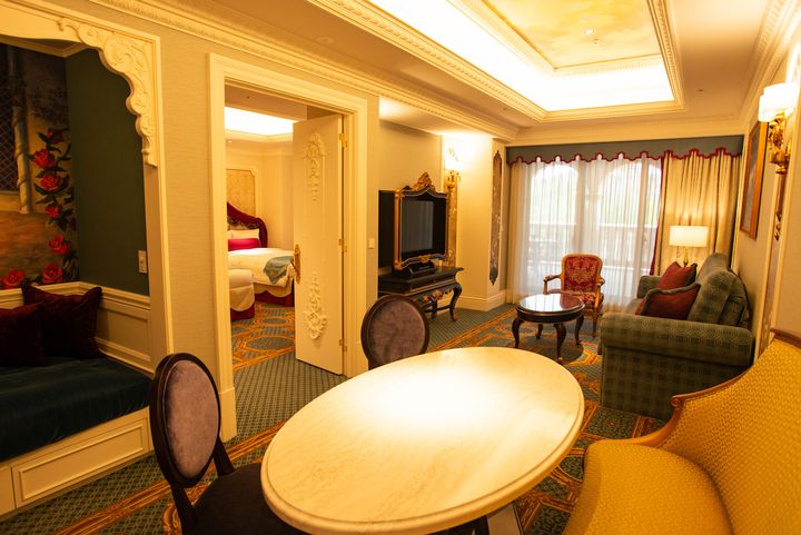 ベッドやソファなどが豪華で重厚感があるのが、この部屋における見どころの一つ。さらにはテラスからは、「ファンタジースプリングス」の景観を一望できるため、部屋にいながらディズニーファンタジーの世界を存分に感じることができます。「テラス&アルコーヴルーム」にステイすれば、まるでディズニーのプリンスやプリンセスになったような気分に浸れるはず。