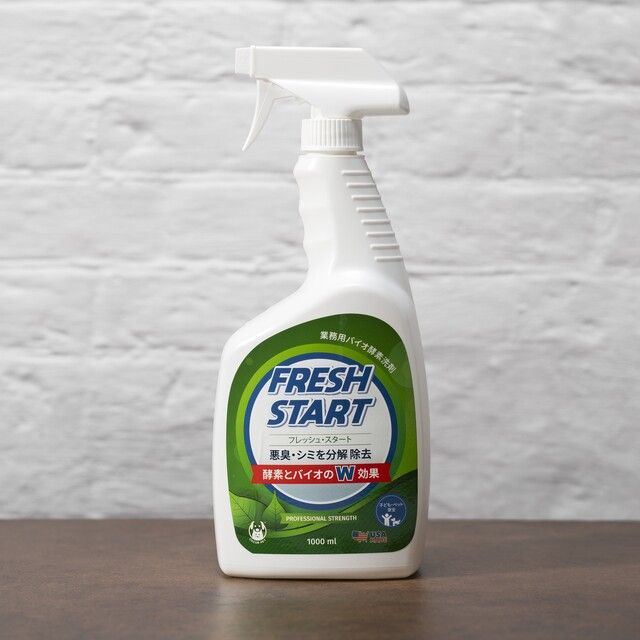 米国製のバクテリア製剤を使用したバイオベースの消臭クリーナー「FRESH START(フレッシュスタート)」は、カーペットの食べ残しなどをきれいに掃除することができます。