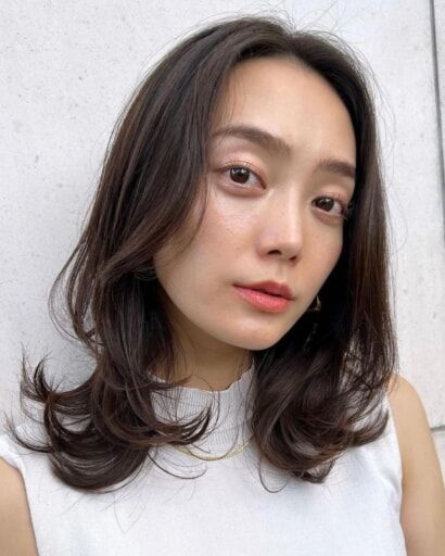 フェミニンなレイヤーヘアと好相性なのが「スモーキーブラウン」のヘアカラー。光に当たるとほんのり明るさを感じさせる色味がさり気なく大人の色気を醸すので、きちんと感の欲しいオフィスシーンはもちろん、デートシーンにも映える髪色です。