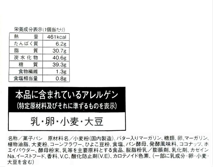 気になるカロリーは、1個461Kcal、糖質は39.3gです。