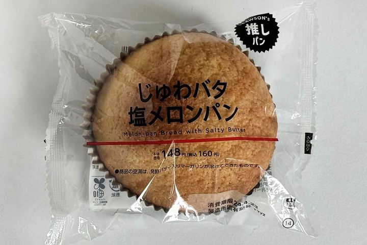 2024年4月20日に放送された『ジョブチューン』(TBS系)の「超一流スイーツ職人がジャッジ! ローソン従業員イチ推しスイーツTOP10!」。審査員7名のうち、6名から“合格”を受け、「おいしい!」と絶賛された「じゅわバタ塩メロンパン」160円。