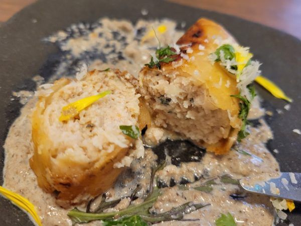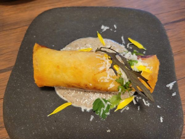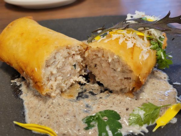 揚げ春巻きの中の具がパツンパツンでギッシリと入っています!これは嬉しい!パリッとした食感の後に口の中に旨味が広がります。ポルチーニソースがめちゃくちゃおいしいです!