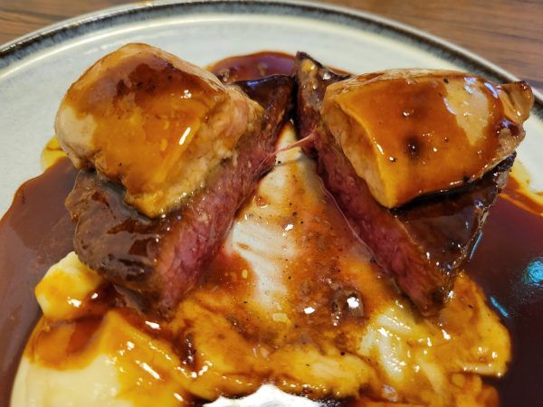 すごくないですか!高森和牛の上に乗っているのがフォアグラですよ!贅沢ですね。高森和牛は、国内出荷数が月間3頭のみの山口県岩国産の希少な黒毛和牛だそうです。獺祭の酒粕を食べているんですよね。