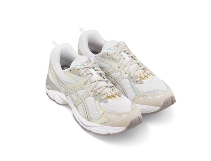写真はアシックスの人気モデルGT-2160をベースに、アッパーやソールに虹色の光沢をのせてTASAKIらしさを表現したコラボスニーカー。あこや真珠を用いた“バランス”や“デインジャー”の贅沢なジュエリーチャームも必見! 他にもEYEVANとコラボしたアイウェアコレクションや、あこや真珠をあしらった、ジュエリーのような造形美のイヤホンも登場。ぜひ会場に足を運んでみて。