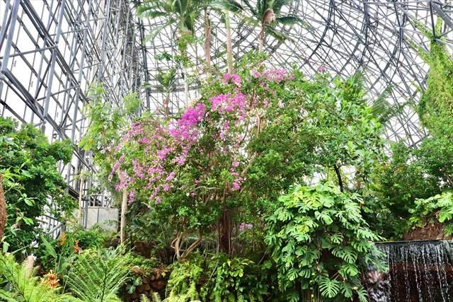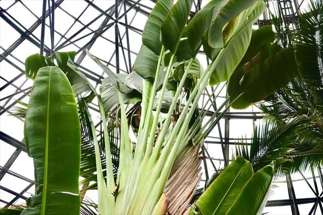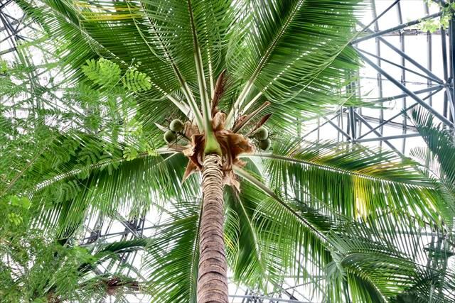 いっぱいに背を伸ばすヤシの木の中には、天井を突き破ってしまう勢いだったため、伐採したものもあるのだとか。大温室の天井までの約28mはビルでいえば8~9階に相当しますから、その巨大さに驚きです。