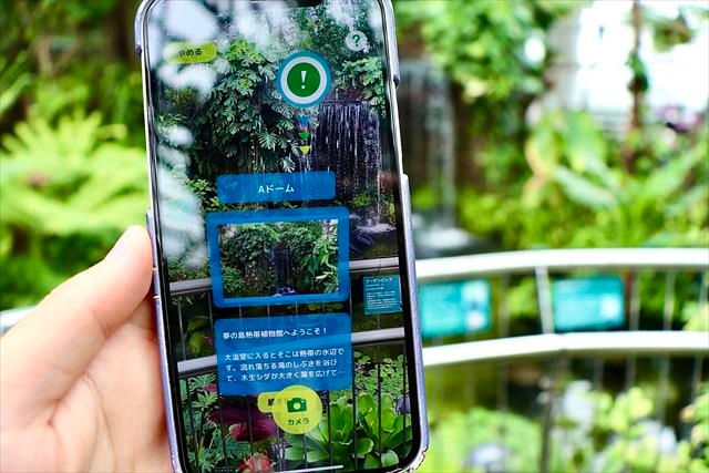館内には各所に2次元バーコードが。こちらをアプリ「熱帯植物虫めがねAR」でスキャンすると、AR技術を用いて、植物の情報をテキストや画像、動画で解説してくれます!