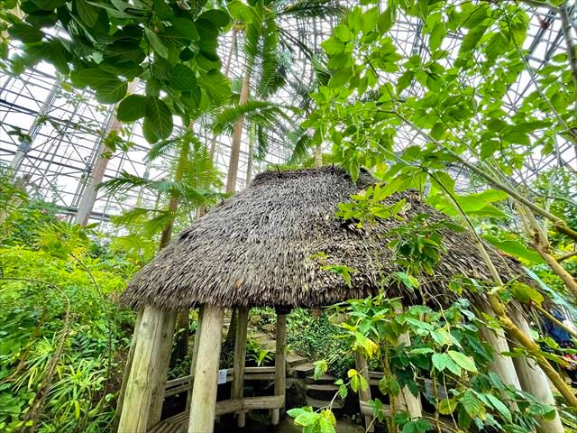 取材日はあいにくの曇り。少し霧雨もちらつくような空模様でしたが、屋根付きの植物園の中なら問題なし。雨の日でも安心です。