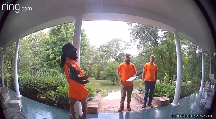 濡れているように見える玄関ポーチを、ペンキが乾いていないと勘違いした男性3人組がなんとかドアベルを鳴らそうと奮闘する様子は、こちらの動画からご覧いただけます。