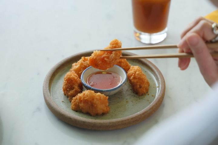 えびのすり身を揚げたトートマンクンは、屋台やレストランなどでも食べられるタイ料理。プリプリの食感がたまらない。