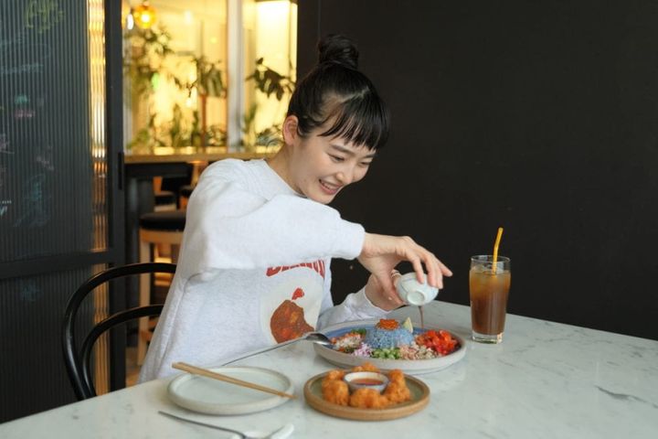 新鮮なちらし寿司みたい! ナンプラーの香りが食欲をそそります。食べたことのないおいしさ。野菜の食感がすべて違い、食べるたびに味が変わります。ヘルシーなのにしっかり味もあるので、すごく満たされます。いくらでも食べられそう! 器もかわいいですね