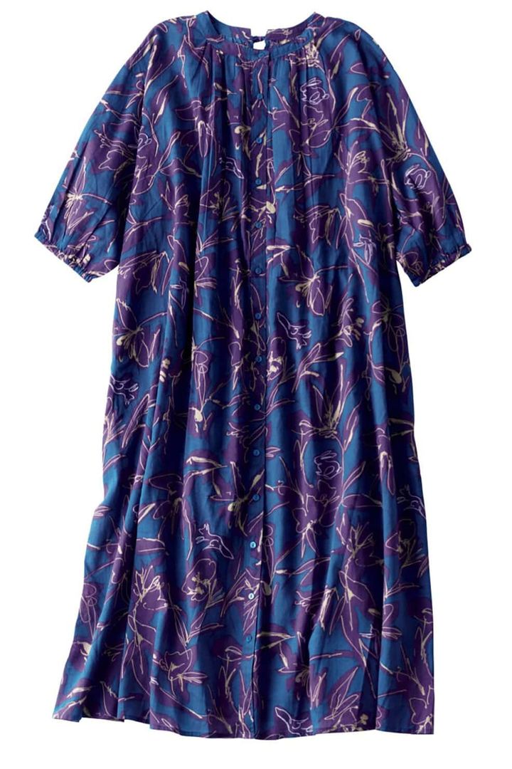 エスニックすぎない印象で、スニーカーなどカジュアルに合わせやすいワンピース。たっぷり袖で印象的に。