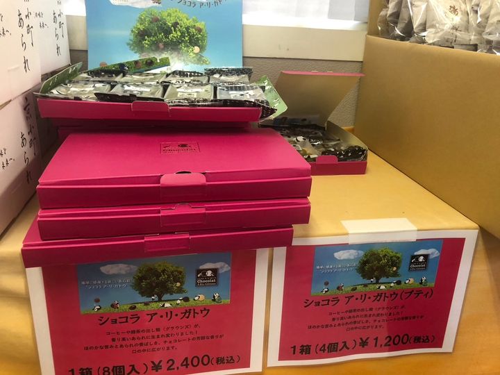 コーヒーや緑茶の出がらしを再利用した「ショコラ ア・リ・ガトウ」は、あられをチョコレートでコーティングした見た目もカワイイ商品です。