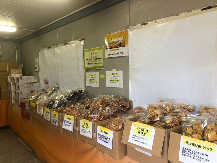 3. あられやおかきがお得な工場直売「ありがとう」。次回は5月11日(土)にガレージセール開催!