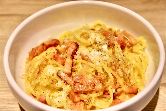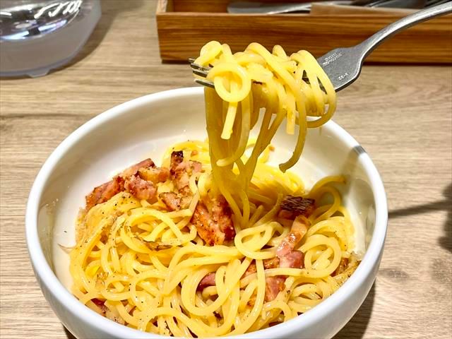 カルボナーラでありながら、あまり重さを感じず飽きがこないのは、和風の味付けのおかげでしょうか。どんなアレンジされているのか、ほかのパスタも気になってしまいます!