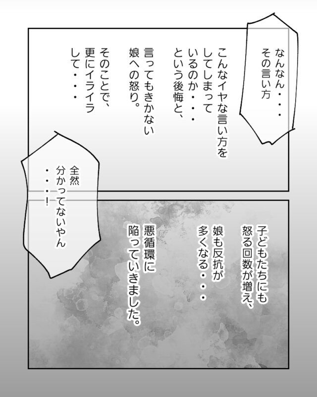 そのことでさらにイライラして・・・子ども達にも怒る回数が増え、娘も反抗が多くなる・・・