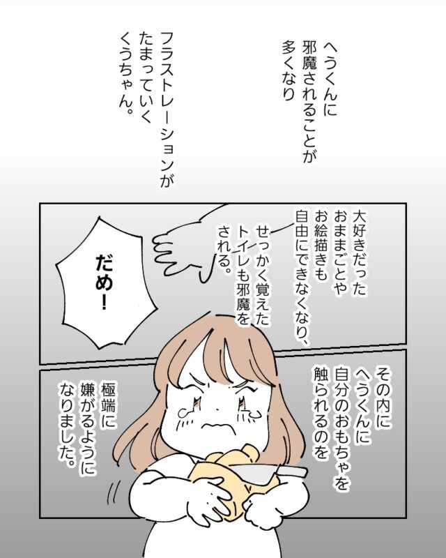 そのうちに、へうくんに自分のおもちゃを触られるのを極端に嫌がるようになりました。