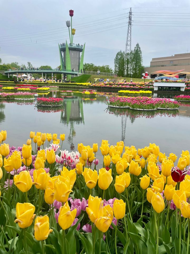 水面にチューリップが浮かぶ幻想的な景色にとても感動しました🤍