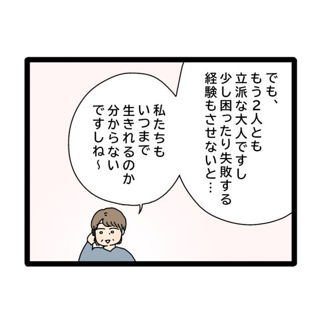 「でも、もうふたりとも立派な大人ですし、少し困ったり失敗する経験もさせないと・・・