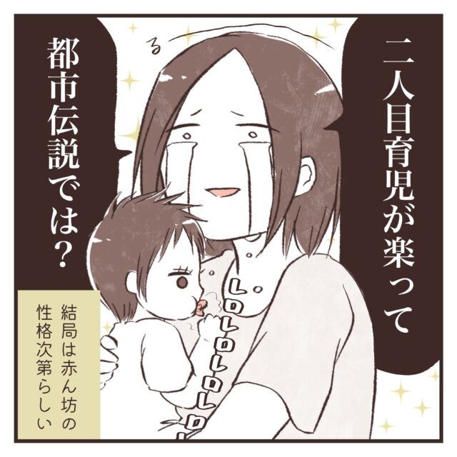 「2人目は楽だよ!!」ってリアルでもネットでも聞きまくるので信じきっていたんですが、結局はその赤ちゃんの性格次第なのと、1人目の育児経験のおかげで親自身が2人目を比較的楽に感じる・・・というだけの話なんですよね・・・笑