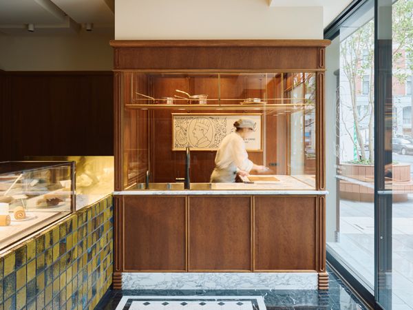 店舗内装はホテルニューグランドの世界観が随所に感じられます。本館の大階段を彷彿させるタイルのカウンター、開業時の本館に採用されたモノトーンのタイル張りをオマージュした床、歴史を感じる写真・・・クラシックでありながら新鮮な美しさ!