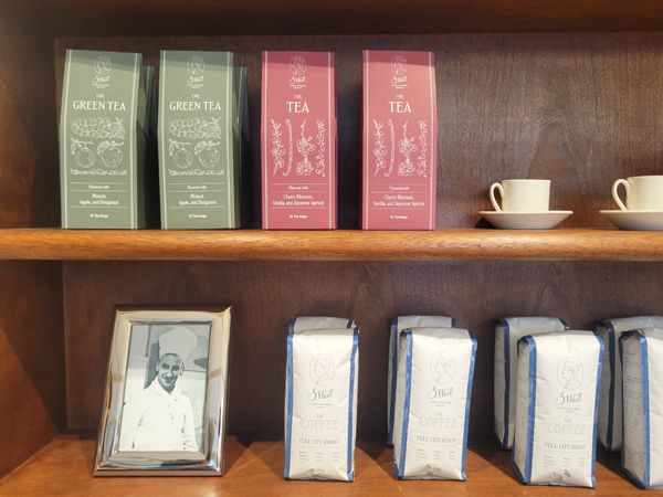 サリー・ワイルさんがコーヒー好きだったこともあり、オリジナルブレンド「ザ・コーヒー(豆)」(1,620円/200g)も販売中。「モカルーロ」にも使われている豆なので、一緒に楽しみたいセットです。ちなみに、写真の紳士がサリー・ワイルさん!