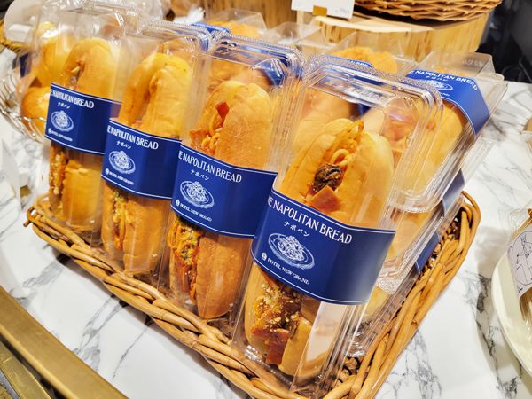 ホテルニューグランド発祥のスパゲッティナポリタンをふわふわのドッグパンでサンドし、今まで限定発売の幻だった「ナポパン」(756円)だけでなく、「ナポパン プレミアム」(972円)も新登場!「ナポパン プレミアム」は毎朝シェフが手作りしたナポリタンをサンドした、なんとも贅沢な逸品。