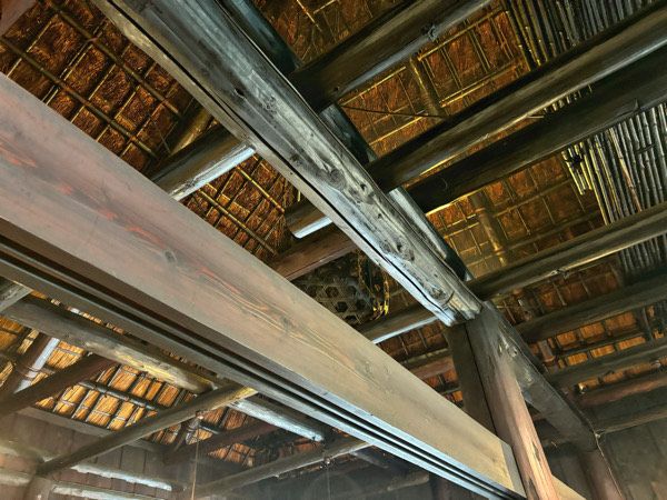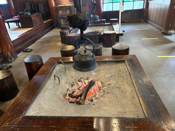 風通し良く、天井は高く、開放的な空間です。入口すぐの所には囲炉裏があり、どこか懐かしい気持ちに心が和みますね。