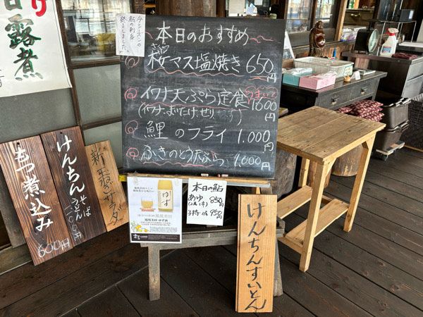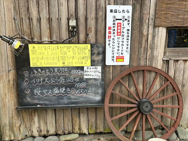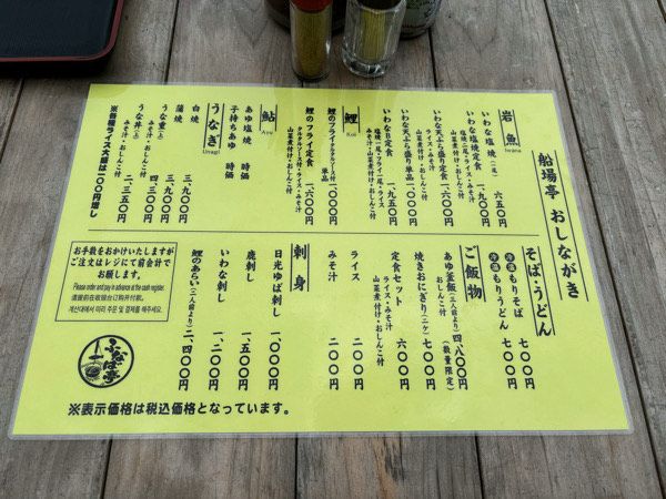 岩魚、鯉、鮎、うなぎといった魚やそばやうどんといったラインナップです。